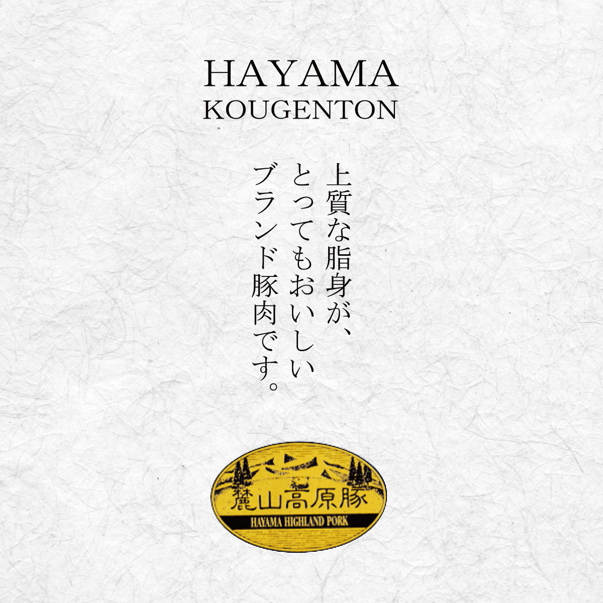麓山高原豚(はやまこうげんとん)は、「ランドレース種」「大ヨークシャー種」「デュロック種」3つの豚の品種を組み合わせた三元豚で、福島県内指定農家でのみ飼育された「限定生産」による福島県産のブランド豚です。